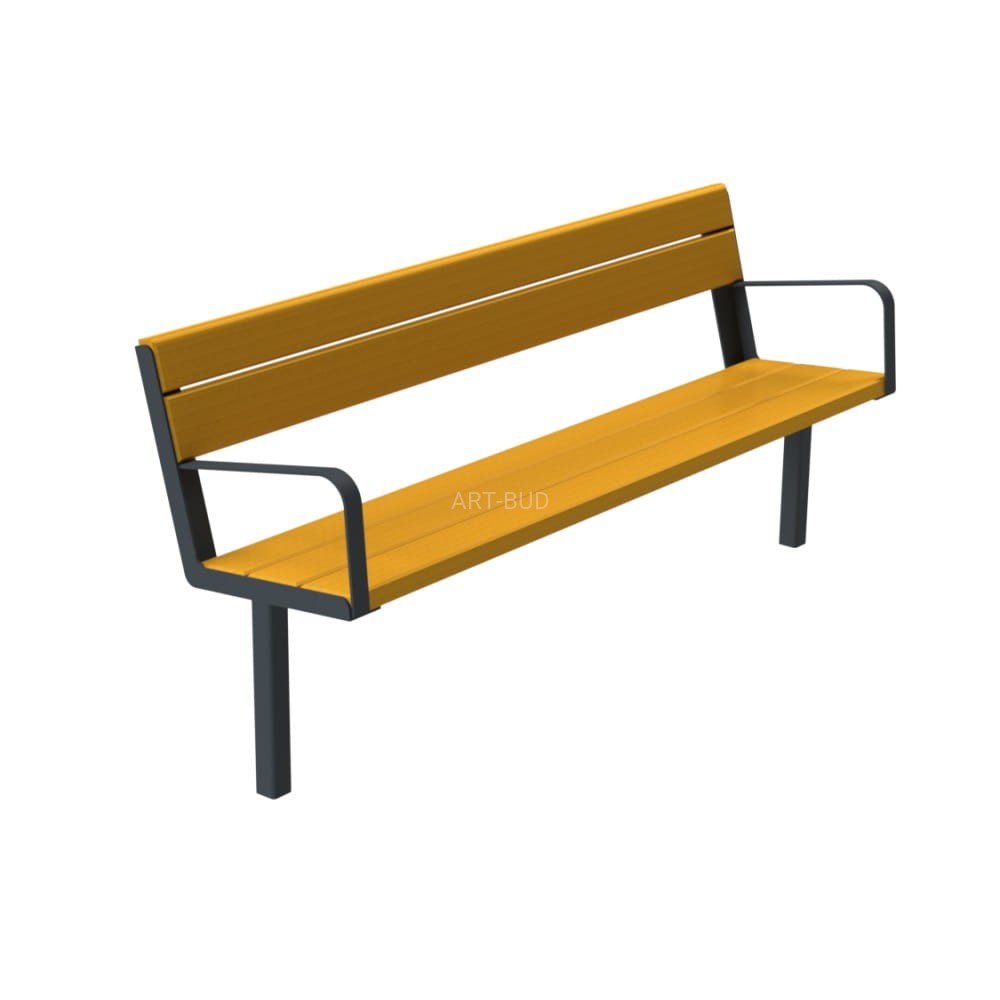 Nowoczesna ławka parkowa uliczna, drewniana, na konstrukcji stalowej ocynkowanej, do samodzielnego montażu. Oferowana w trzech rodzajach drewna oraz długościach 150 lub 180 cm do wyboru. Do wyboru są również kolory lakierów i impregnatów, a także kolor farby nawierzchniowej konstrukcji stalowej. Ławka po przygotowana do montażu przez przykręcenie w podłożu utwardzonym lub przez zabetonowanie.