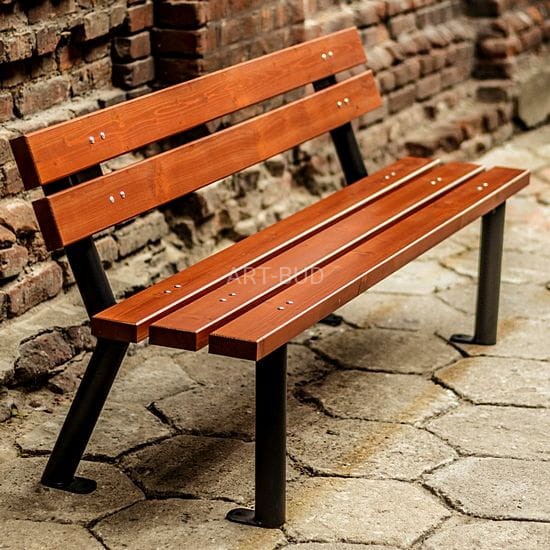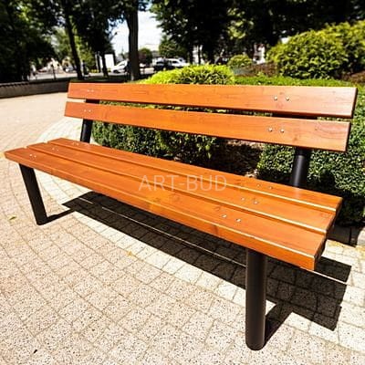 Ławka miejska z oparciem drewniano stalowa 180 cm Warszawska