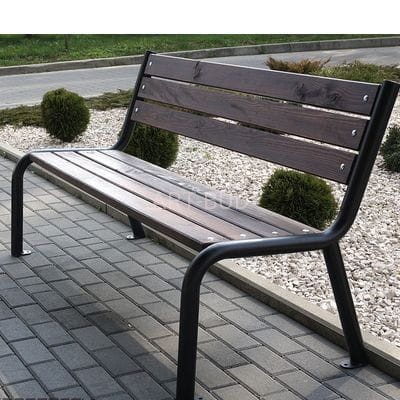 Klasyczna, funkcjonalna i wygodna ławka z oparciem . Z powodzeniem może służyć jako element architektury parkowej i ogrodowej. Wykonana z listw drewna świerkowego, podwójnie malowane farbą lazurową. Konstrukcje stalową stanowi rura Ø 48,3 mm pomalowana metoda proszkową na kolor czarny mat.
