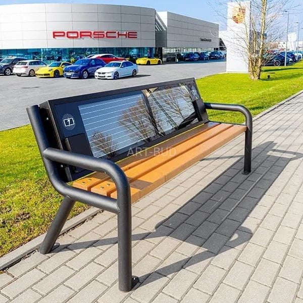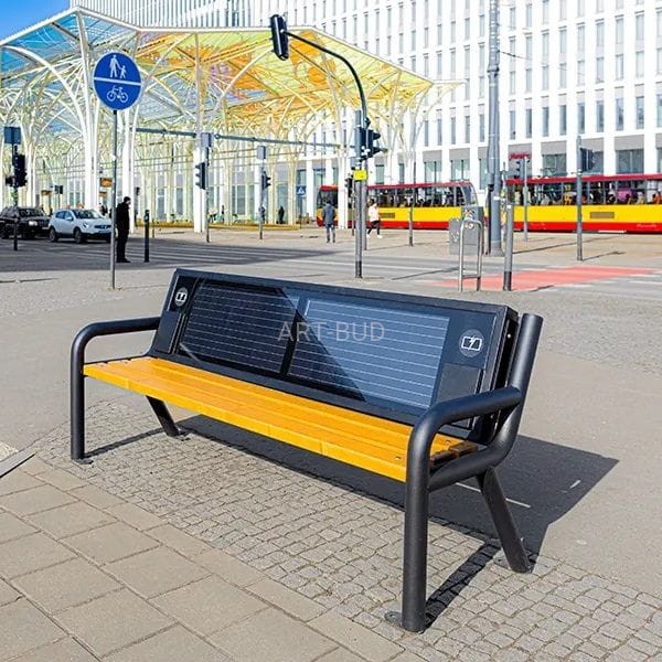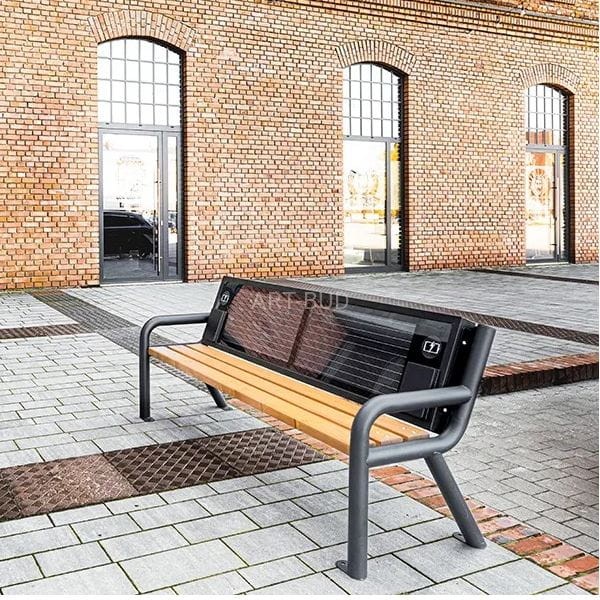 Ławka solarna stalowa z drewnianym siedziskiem Helios