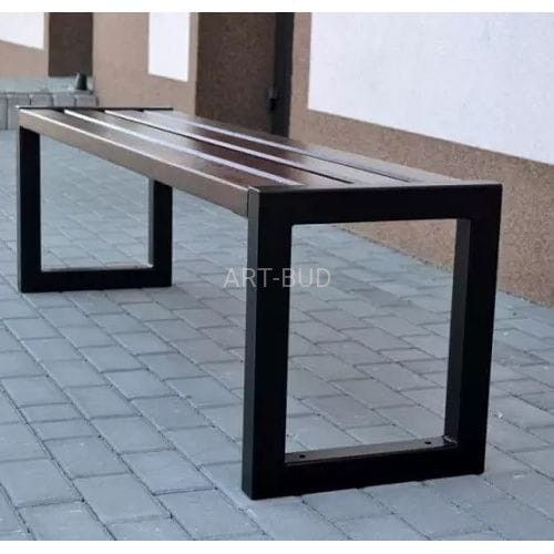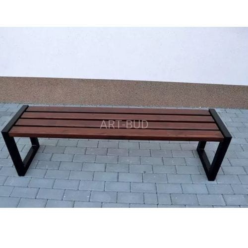 Ławka bez oparcia, wykonana z wyszlifowanych czterech desek z drewna iglastego, które są następnie natryskowo malowane podkładem i lazurą do drewna. Konstrukcja stalowa jest ocynkowana i malowana.