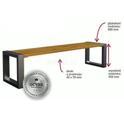 Ławka parkowa stalowo drewniana GRANDE bez oparcia długość 180 cm ocynkowana impregnowana