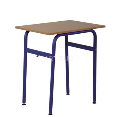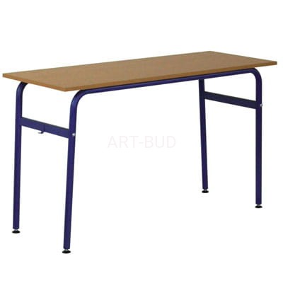 Ławka szkolna Alan wykonana z rury fi 32 i 40x20, malowana proszkowo. Blat ławki wykonany z płyty laminowanej o gr. 18 mm wykończony obrzeżem PCV 2mm.