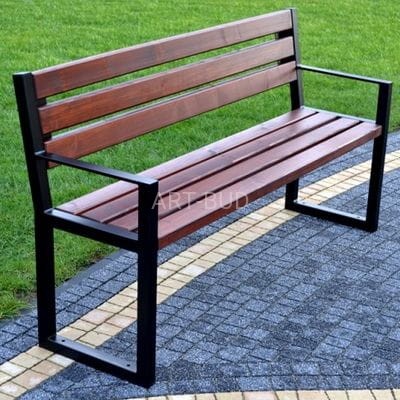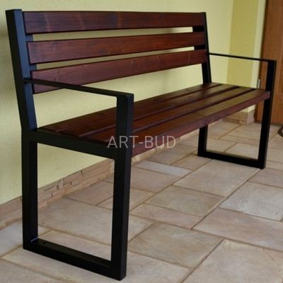 Ławka z oparciem i podłokietnikiem stalowo drewniana ANA długość 150 lub 180 cm grubość deski 4 cm