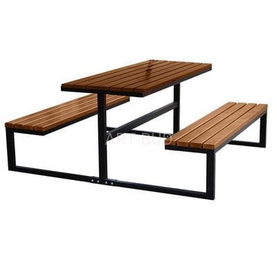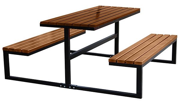 Nowoczesny zestaw plenerowy w postaci stołu zintegrowanego z dwoma ławami bez oparcia. Konstrukcja nowoczesna, estetyczna, wysokiej jakości wykonania a jednocześnie niezwykle funkcjonalna i ergonomiczna. Ławostół doskonale sprawdzi się zarówno w plenerowych punktach gastronomicznych i jako zestaw wypoczynkowy na parkingach, w parkach, czy szkołach. Konstrukcja metalowa jest standardowo malowana na kolor czarny.