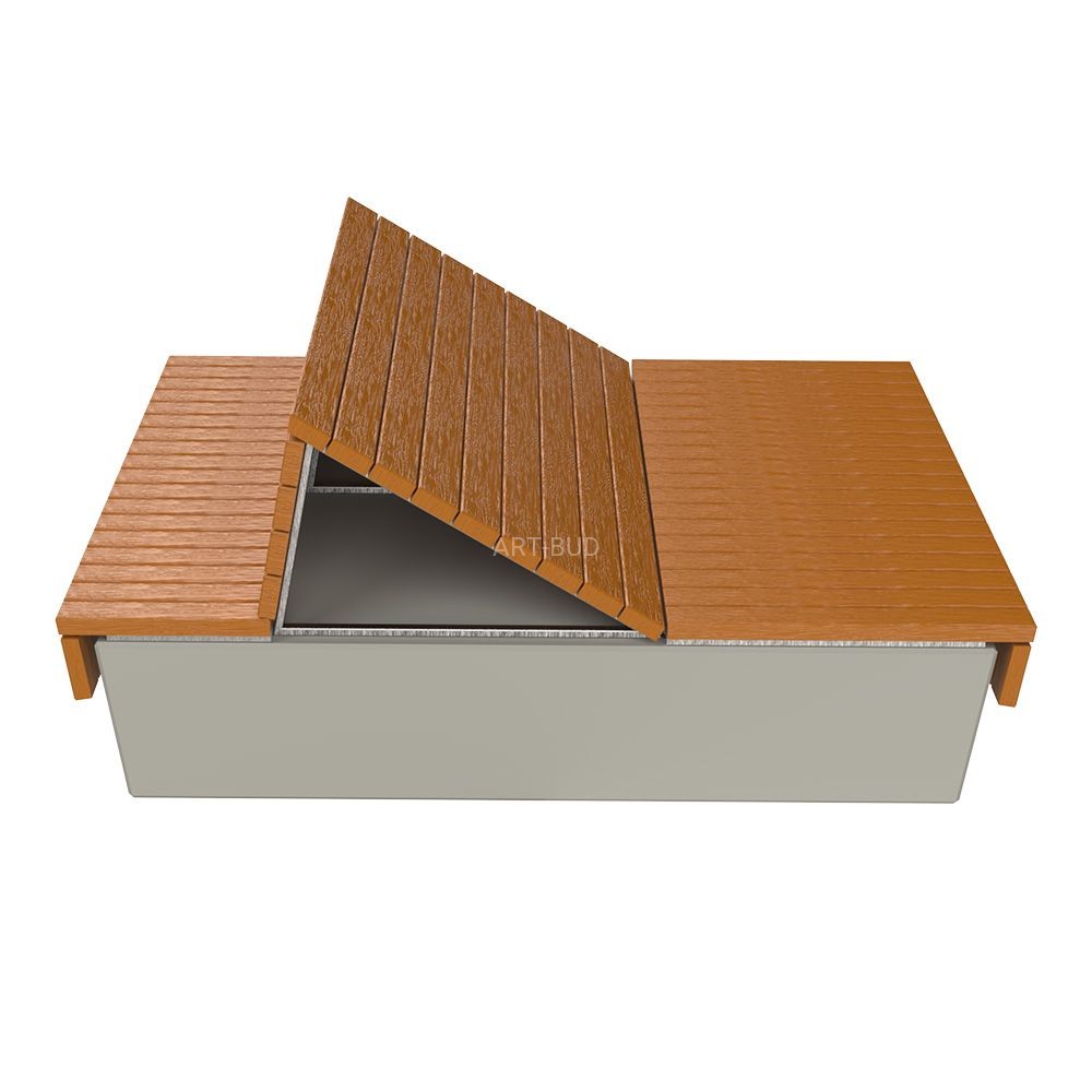 Nowoczesna ławko-leżanka miejska z betonu architektonicznego z siedziskiem i oparciem drewnianym dwustronnym. Jest to duża ciężka ławka wolnostojąca, która nie wymaga dodatkowego mocowania do podłoża. Nowoczesna forma pozwala na wszechstronne zastosowanie, a duża szerokość siedziska umożliwia wykorzystanie przez większą liczbę osób. Przeznaczona przede wszystkim do zastosowania na terenach rekreacyjnych, basenach plenerowych, plażach i uzdrowiskach.