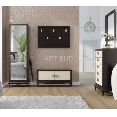 Korpusy: na zewnątrz naturalna okleina anegre w kolorze Y4 (anegre wenge), wewnątrz folia meblowa.
