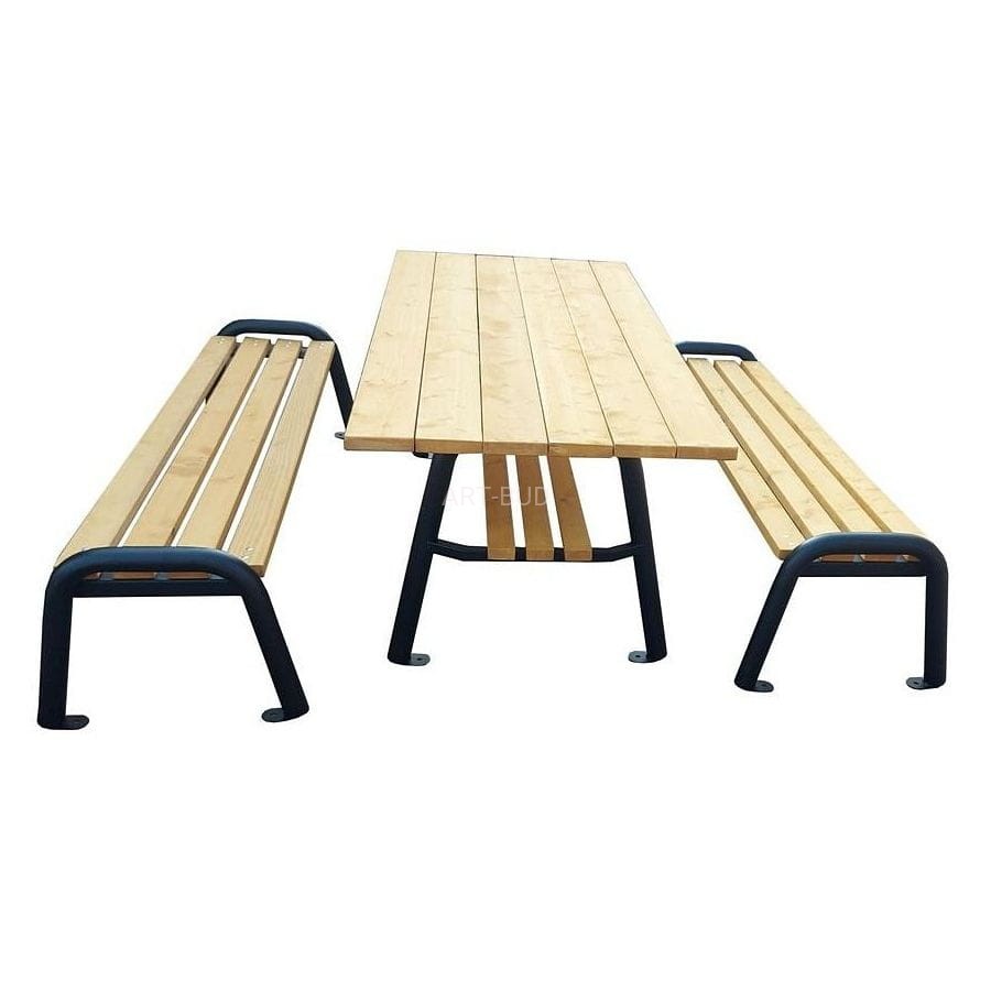 Meble ogrodowe parkowe tarasowe zestaw na plac zabaw stół i dwie ławki bez oparcia Alicja BO XL