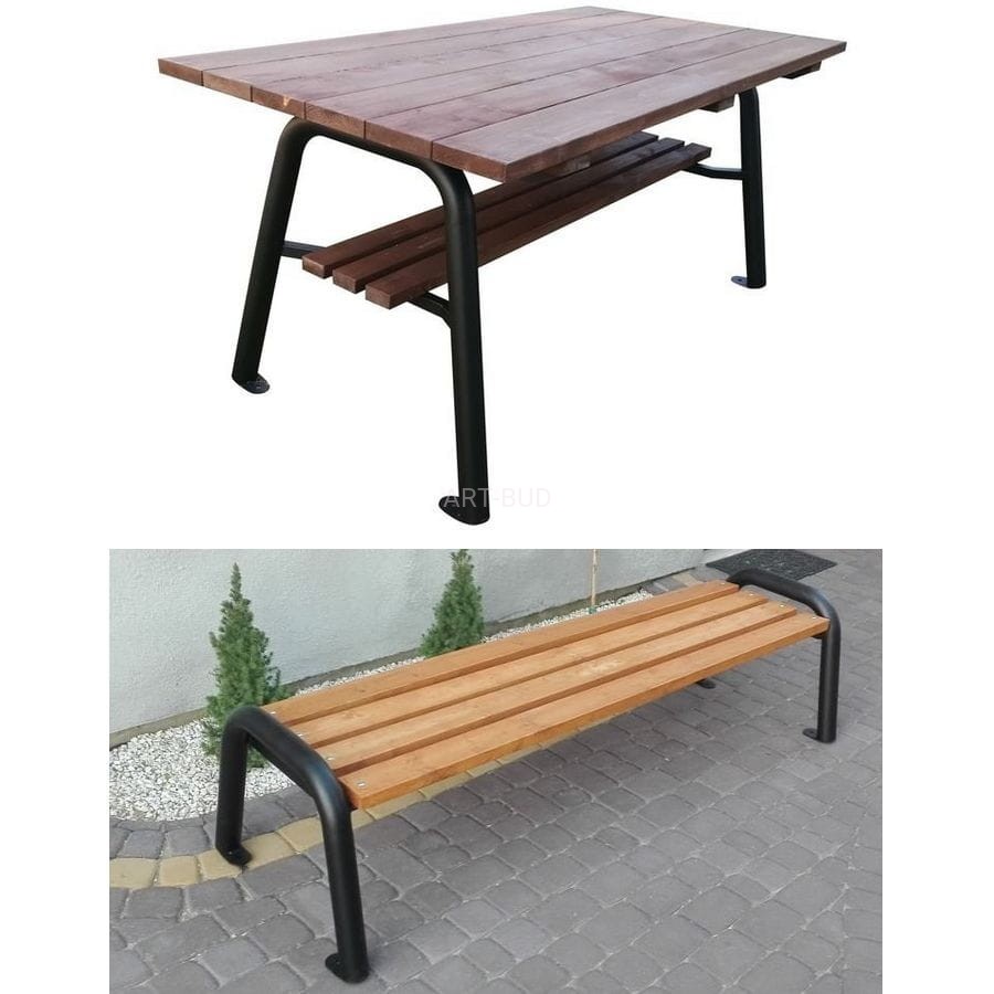 Meble ogrodowe parkowe tarasowe zestaw na plac zabaw stół i dwie ławki z rur bez oparcia Alicja BO XL