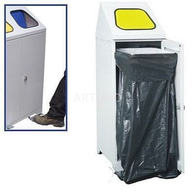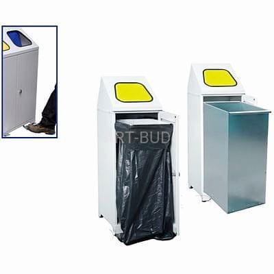 Nowoczesny, wolnostojący stalowy pojemnik na odpady z klapą wrzutową uruchamianą pedałem. Dzięki takiemu rozwiązaniu pojemnik jest jeszcze bardziej funkcjonalny i higieniczny. Pozwala lepiej zachować czystość, zarówno rąk jak i samego pojemnika oraz ogranicza wydostawanie się zapachów pojemnika oraz ingerencje much i innych owadów.