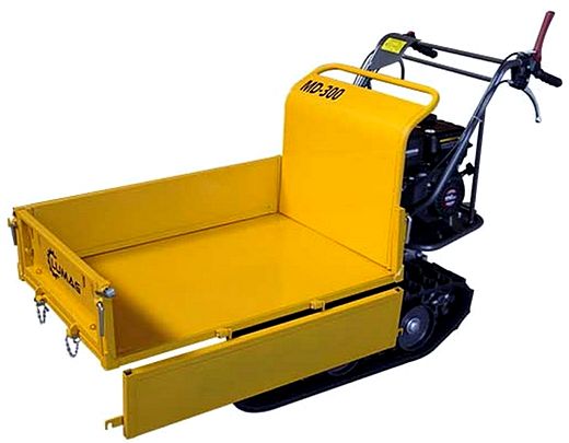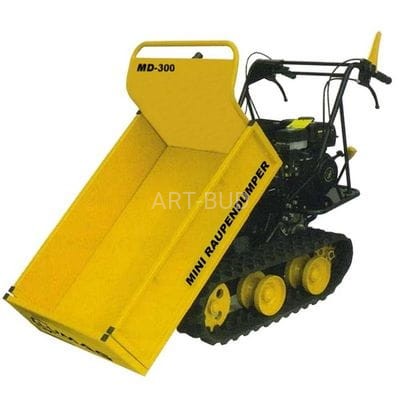 Wywrotka MD-300 to uniwersalne narzędzie przydatne wszędzie tam , gdzie zachodzi potrzeba przewożenia różnych materiałów sypkich, takich jak na przykład żwir, piasek, drewno lub sól. Ponadto wywrotką można poruszać się po stromych zboczach i bez wysiłku przewozić przedmioty. Wywrotka posiada również gumę na łańcuchach co powoduje jej przyczepność zarówno na śliskich jak i błotnistych powierzchniach.