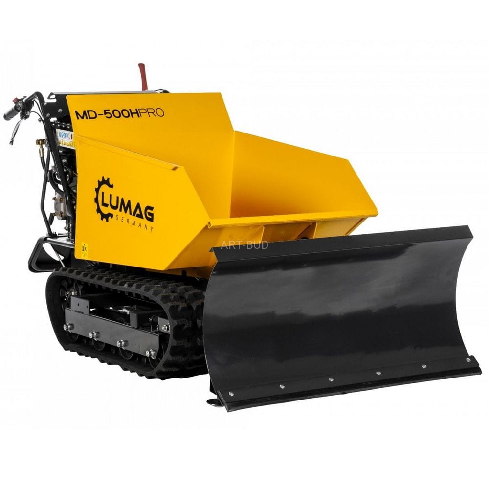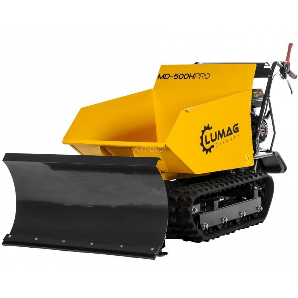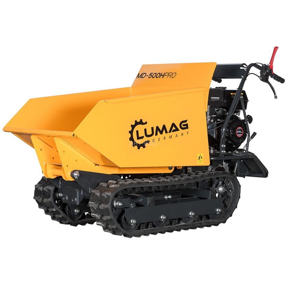 Miniwywrotki marki Lumag Germany sprawdzają się w najtrudniejszych warunkach dzięki wytrzymałej konstrukcji i wysokiej jakości materiałów. Budowa wywrotek pozwala na osiągnięcie dużej wydajności oraz sprawności. Gąsienicowa miniwywrotka MD500H-PROT z hydrauliczną wywrotką dzięki swym wymiarom może być swobodnie używana w budynkach i w wąskich przejściach, przejazdach. Ładowność wynosi 500 kg. Wywrotką można przewozić różne materiały od piachu i innych sypkich materiałów przez pustaki, kamienie i cegłówki do drewna opałowego itp.