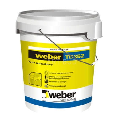 Tynk mozaikowy weber TD352 jest dostarczany w postaci gotowej do użycia, należy go tylko dokładnie wymieszać. Mieszanie wykonać ręcznie. Nie używać mieszadła elektrycznego. W przypadku, gdy konsystencja tynku jest zbyt gęsta (dłuższe przechowywanie, wysokie temperatury, itp.) tynk można rozcieńczyć niewielką ilością czystej wody – zazwyczaj nie więcej niż 200 - 300 ml na wiadro 30 kg.
