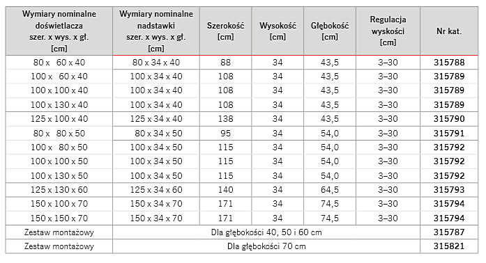 DOSTĘPNE WYMIARY NADSTAWEK REGULOWANEJ WYSOKOSCI ACO Therm: