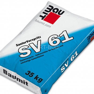 Obrzutka renowacyjna SanierVorspritz SV 61 przeznaczona do wstępnego przygotowania zawilgoconych i/lub zasolonych podłoży mineralnych (mur, stary, chłonący wodę beton), stanowiąca warstwę szczepną pomiędzy podłożem a tynkiem renowacyjnym.
