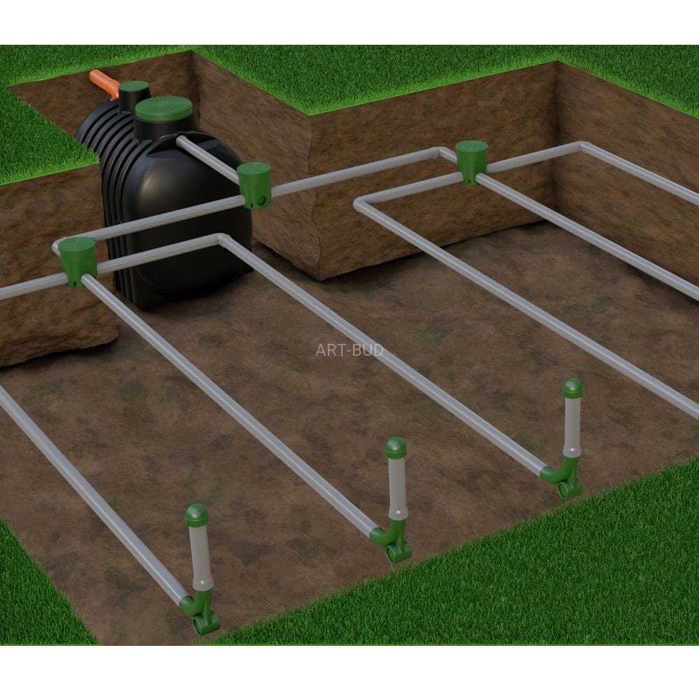 Pierwszy etap oczyszczania zachodzi w osadniku gnilnym, gdzie odbywają się procesy sedymentacji, flotacji i fermentacji. Następnie podczyszczone ścieki przepływają do studzienki rozdzielczej, dzięki której są równomiernie rozprowadzane do rur rozsączających. Ścieki przechodzą przez rury i przesiąkają do gruntu, gdzie zachodzi biologiczne oczyszczanie.