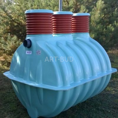 Korpus, w jaki została wyposażona nasza oczyszczalnia biologiczna, wykonany jest z laminatu GRP zbrojonego o wysokiej wytrzymałości konstrukcyjnej. Zbiornik posiada cylindryczną konstrukcję samonośną. Zbiornik jest gęstożebrowany specjalnymi przetłoczeniami i nie wymaga żadnych obmurowań, czy wzmocnień przy standardowym posadowieniu. Niewielka wysokość zbiornika pozwala na łatwy montaż w płytkich wykopach. Ma to ogromne znaczenie przy wysokim poziomie wód gruntowych. Wokół osi podłużnej zbiornika znajduje się dodatkowo specjalny kołnierz umożliwiający kotwienie zbiornika przy wysokiej wodzie gruntowej.