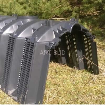 Zastosowane tunele filtracyjne mają formę pakietów o długości 1.06m wysokości 0,5m i szerokości 0,7m. Pojedyncze pakiety łączą się ze sobą dachówkowo na zatrzask w ciągi o dowolnej długości. Początek i koniec ciągu stanowi płyta zamykająca zapinana na zatrzask. Płyta posiada miejsce na wycięcie otworu pod rurę zasilającą DN110 lub DN160mm. Każdy z pakietów posiada miejsce na wycięcie otworu pod rurę pionową odpowietrzającą. Tunele przystosowane są do ruchu kołowego lekkiego więc z powodzeniem mogą być stosowane również pod traktem komunikacyjnym. Należy wówczas pamiętać aby cała powierzchnia nad tunelem nie była utwardzona bo to ogranicza dostęp tlenu poprzez grunt.