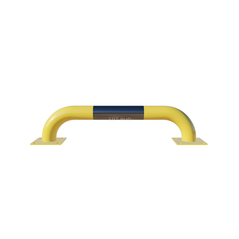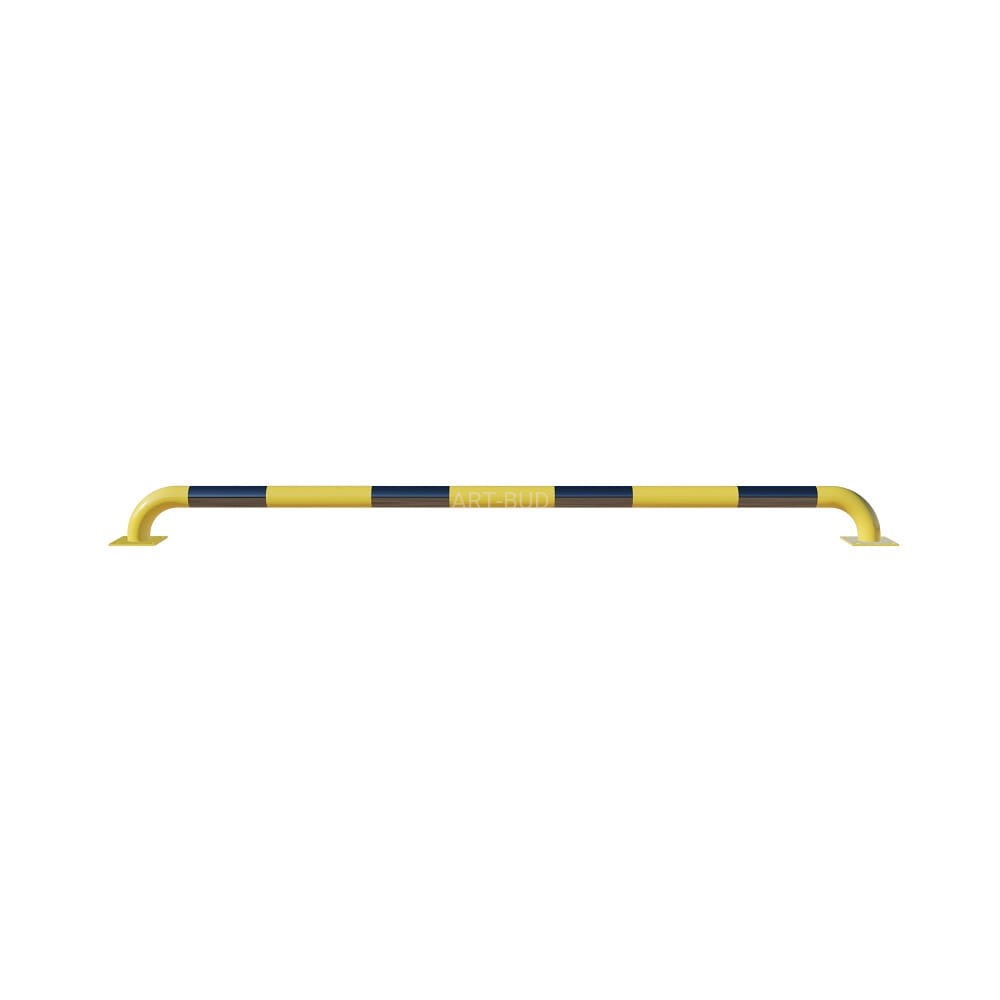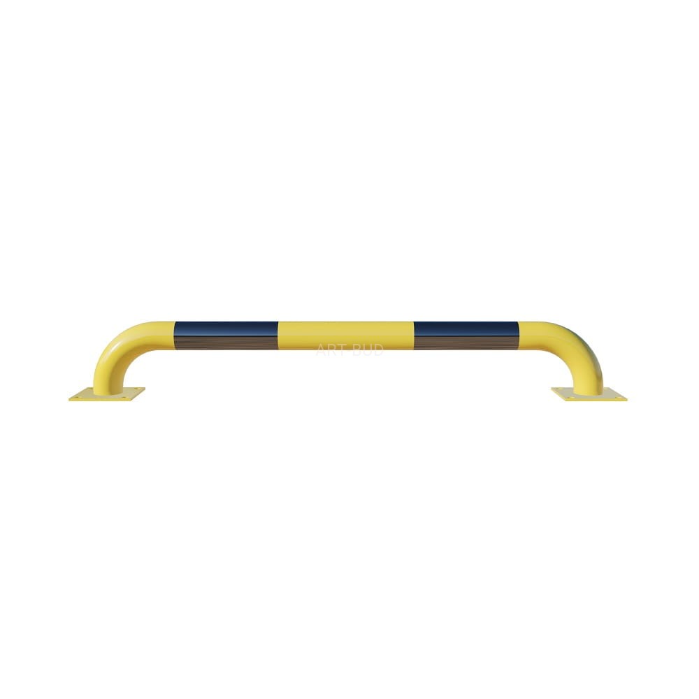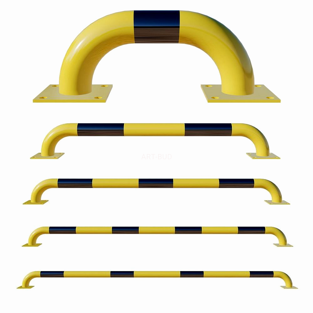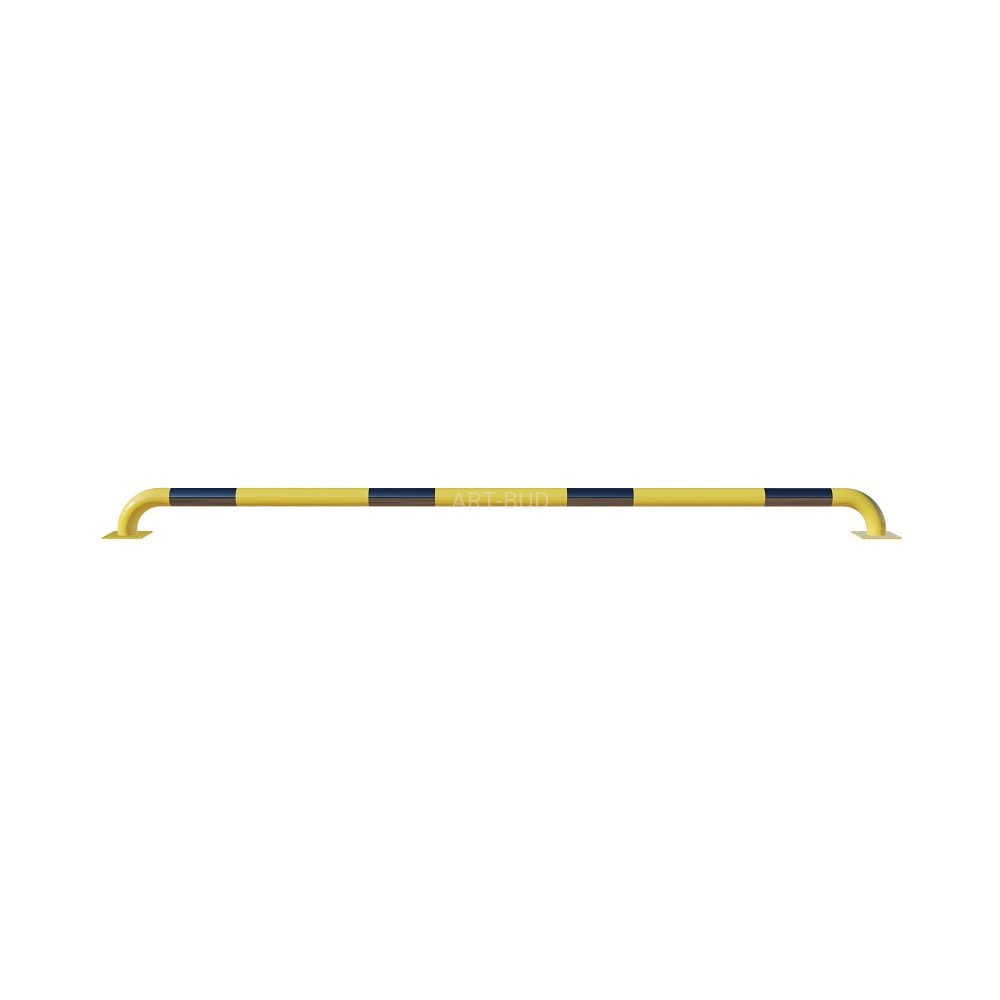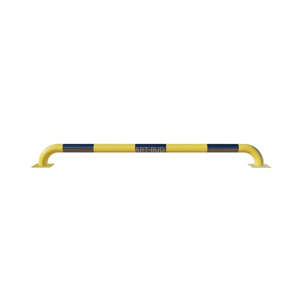 Przykręcana odbojnica liniowa z rury ocynkowanej, malowana proszkowo, oklejana folią odblaskową.
