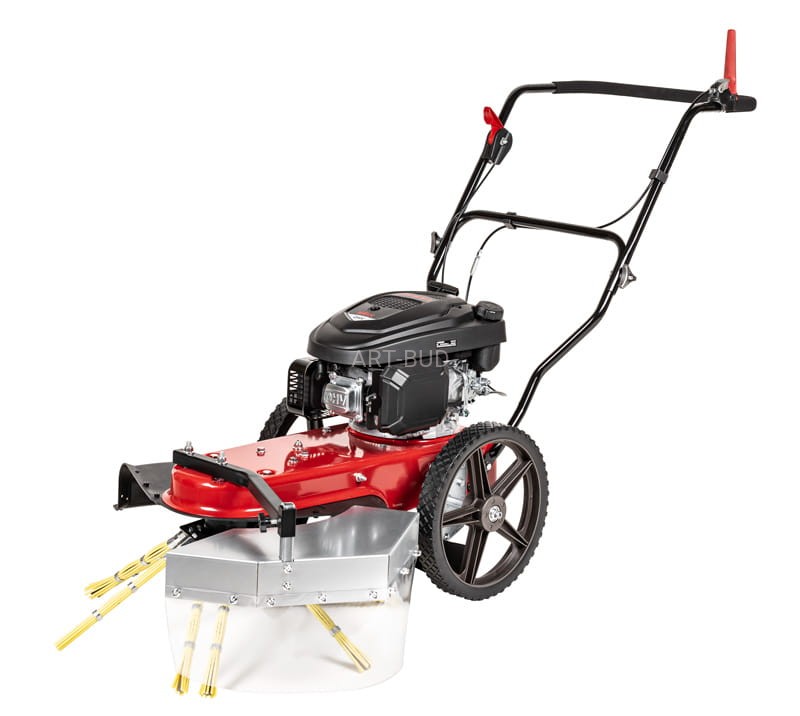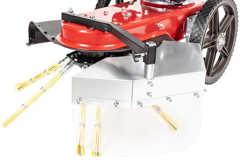 odchwaszczarka wyposażona jest w 9 szczotek i szerokość roboczą wynoszącą 70 cm, co pozwala na efektywne czyszczenie dużych powierzchni. Szczotki wykonane są z kombinacji prętów metalowych i tworzywa sztucznego, co gwarantuje wysoką jakość pracy. Duże, łożyskowane koła ułatwiają manewrowanie odchwaszczarką, a osłona po lewej stronie szczotek wyłapuje zanieczyszczenia wylatujące spod urządzenia.