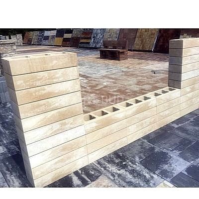 modułowy. Składa się z jednego rodzaju pustaka betonowego trzykomorowego i dedykowanego specjalnie do tego ogrodzenia daszku, oraz opcjonalnie z pokrywy/daszka płaskiego.