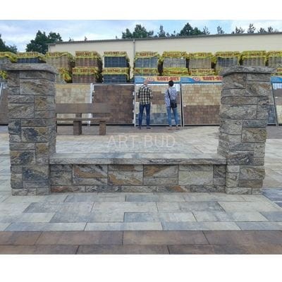 Ta technologia pozwalająca uzyskać produkt modułowy przy zachowaniu efektu wizualnego zbliżonego do łupanego kamienia naturalnego, stała się niezwykle popularna w produkcji elementów architektury ogrodowej i okładzin, również wewnętrznych . System uzupełniają daszki, komponujące się z bloczkami i stanowiące idealne wykończenie ogrodzenia.Modułowy system ogrodzenia łupanego powstał z myślą o sympatykach kamienia naturalnego – zarówno faktura, jak i kolor naszego produktu znakomicie go naśladują.