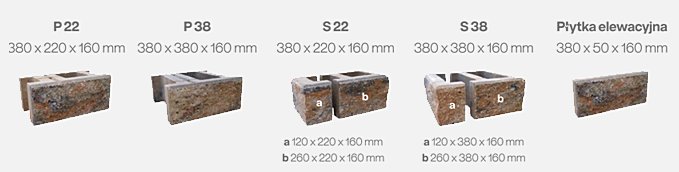 | Model | P 22 | P 38 | S 22 | S 38 | Płytka elewacyjna |