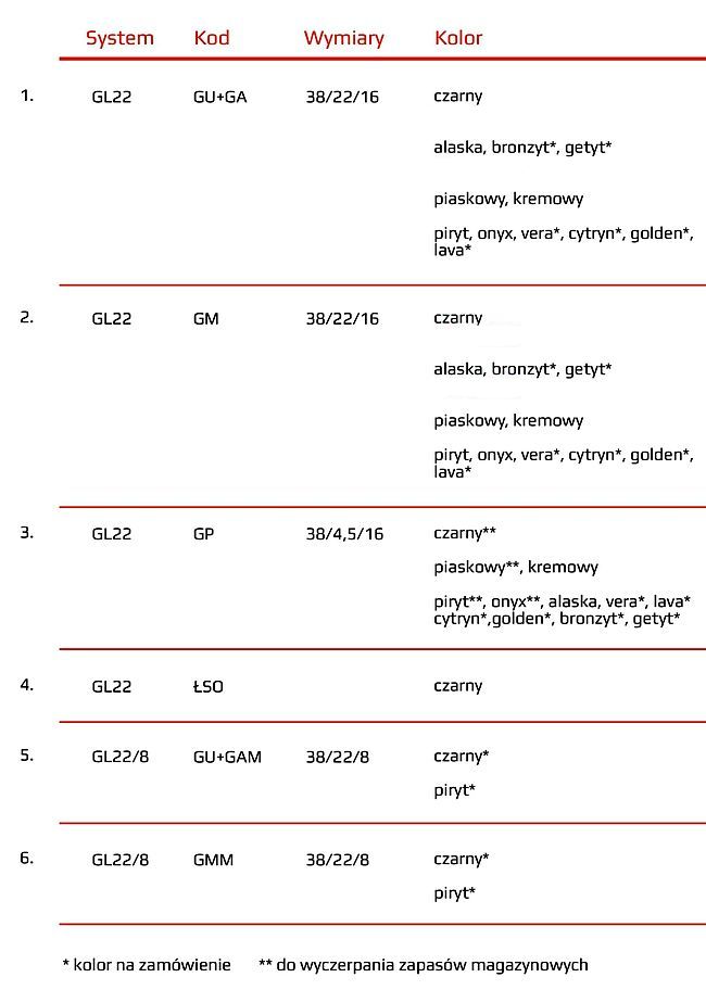 Podana cena dotyczy bloczka system GL 22 kod GM kolor czarny.