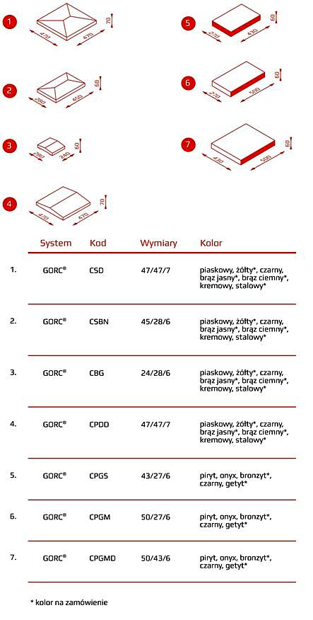 KOLORY OGRODZEŃ SYSTEMU GORC: