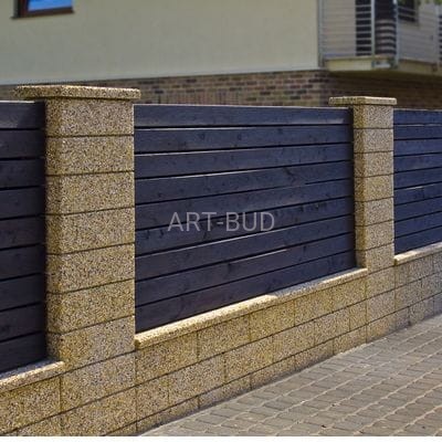 Proponowane elementy ogrodzenia z wykorzystaniem naturalnych materiałów w postaci grysów i żwirów cieszą się bardzo dużym zainteresowaniem. Kształt elementów oraz kolor faktury pozwala na uzyskanie efektownego ogrodzenia. Standardowy element o wymiarach 30 x 30 x 17,5 cm pozwala na uzyskanie słupka ogrodzeniowego o dowolnej wysokości. Można również wykonać otwory do umieszczenia urządzeń elektronicznych, np. domofonu. Ekskluzywnym uzupełnieniem słupka ogrodzeniowego może być pokrywa prosta lub kopertowa 35 x 35 cm. Przęsło międzysłupkowe może przybierać dowolną długość dzięki modułowej budowie z pustaków międzysłupkowych o dwóch długościach: 50 cm i 25 cm. Dodatkowo za uzupełnienie przęsła mogą służyć pokrywy międzysłupkowe — kopertowa lub prosta — o długości 50 cm lub 100 cm. Możliwe są też inne wersje dostępne na zamówienie. Polecamy: pustak międzysłupkowy, pokrywy na słupki oraz pokrywy na cokoły.