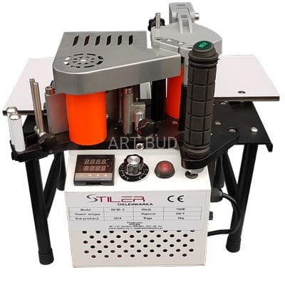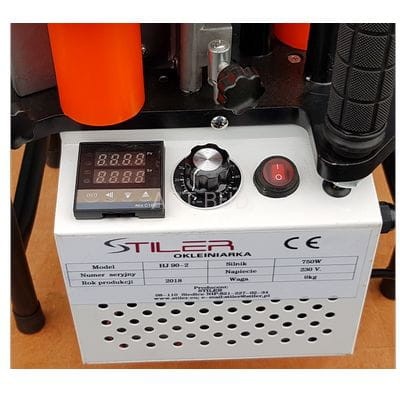 Okleiniarka ręczna STILER HJ90-2 posiada panel sterujący wyposażony w wyświetlacz na którym przedstawiona jest aktualna temperatura kleju. Dodatkowo koło włącznika umieszczony jest suwak prędkości podawania taśmy. Urządzenie w łatwy i szybki sposób można przerobić na maszynę stacjonarną. Wszystkie niezbędne do tego elementy umieszczone są w zestawie.