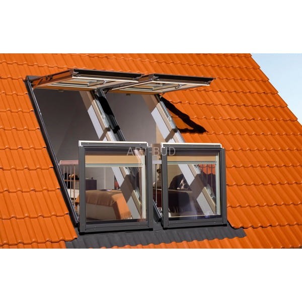 Okno balkonowe FGH-V P5 Galeria to nowatorskie, duże okno dachowe, w którym otwarte skrzydła tworzą balkon.