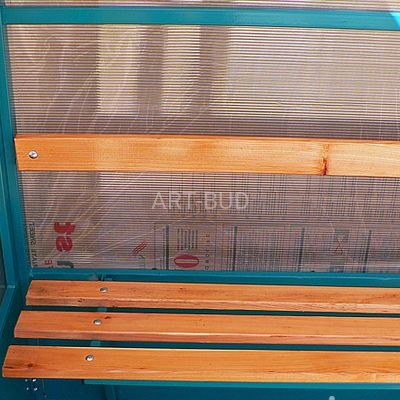 Każda wiata posiada ławeczkę stalowo drewnianą i kosz- popielniczka.