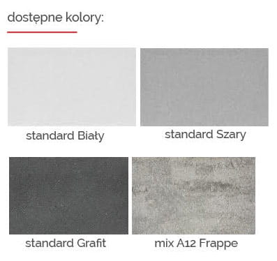 Dostępne w uniwersalnej kolorystyce: szary, grafit, biały, A12