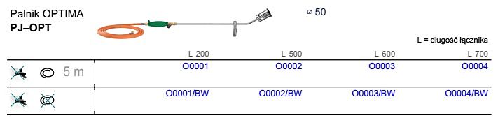 Przedstawiona cena dotyczy palnika PJ OPT 50 L 200 bez węża
