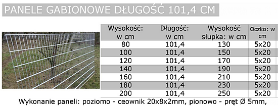 Cena przedstawiona przy produkcie dotyczy panelu gabionowego długości 100 cm, wysokość 800 mm