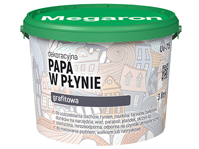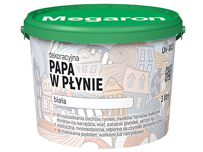Dekoracyjna Papa w Płynie Megaron jest elastycznym materiałem powłokowym, służącym do zabezpieczania zewnętrznych powierzchni. Papę można zastosować zarówno w celu ochronnym, jak i dekoracyjnym. Pod względem chemicznym stanowi mieszankę surowców mineralnych, dyspersji polimerowej, chemicznych dodatków modyfikujących i wody, o konsystencji gęstej, jednorodnej. Elastyczność oraz wytrzymałość na kontakt z wodą zapewnia wysoką odporność powłoki bez względu na warunki atmosferyczne.
