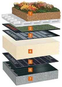 Przykład 2. Jednowarstwowy, solidny układ hydroizolacji z folii z tworzywa sztucznego, na różnych rodzajach termoizolacji, pod układ zazielenienia.