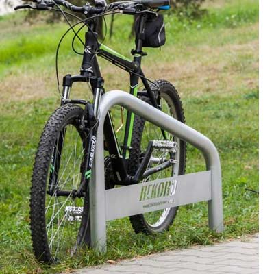 Parking rowerowy typu U skośny wyróżnia się nietypowym kształtem.