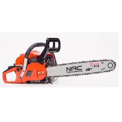 Piła łańcuchowa spalinowa CST52-45-01AC 49,3cc NACPilarka spalinowa CST52-45-01AC 49,3cc to jeden z najlepiej sprzedających się modeli pił łańcuchowych firmy NAC. Pilarka spalinowa NAC CST52-45-01AC została wyposażona w silnik o dużej mocy o pojemności 49,3 cm 3 , o maksymalnym momencie obrotowym 2,8 Nm który świetnie poradzi sobie do wszelkich prac w ogrodzie, w gospodarstwie, na działce, na budowie oraz przy pracach w lesie. Piła posiada stalowy grzebień oporowy, mechanizm natychmiastowego zatrzymania łańcucha oraz wbudowane amortyzatory minimalizujące drgania podczas pracy. Zwarta i mocna obudowa, antywibracyjna rączka, wysokiej jakości prowadnica z łożyskiem oraz wytrzymały łańcuch zapewniają doskonałą efektywność pracy.