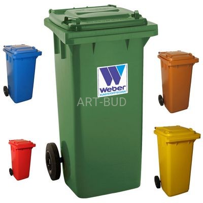 Standardowe, sprawdzone pojemniki na odpady z tworzywa odpornego na warunki atmosferyczne i urazy mechaniczne, zachowujące przez długie lata estetyczny wygląd i kolor . Pojemniki do selektywnej zbiórki odpadów - wykonane na bazie standardowych pojemników dwu lub czterokołowych, plastikowych wykonane ze specjalnie stworzonego tworzywa sztucznego.