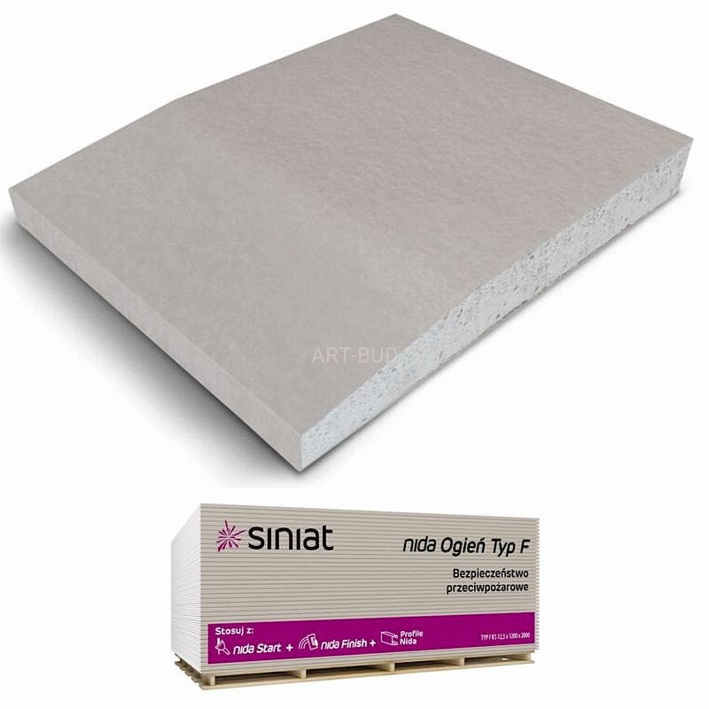 Płyta gipsowo kartonowa odporna na ogień GKF Nida Ogień Typ F 12,5x1200x2600 SINIAT