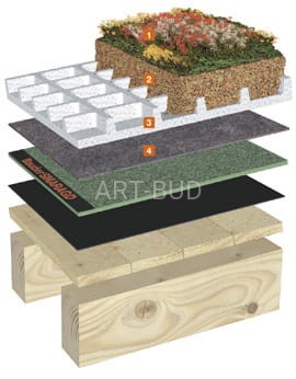 Przykład zastosowania płyty Bauder Wasserspeicherplatte  jako warstwa drenująca i odsączająca wodę