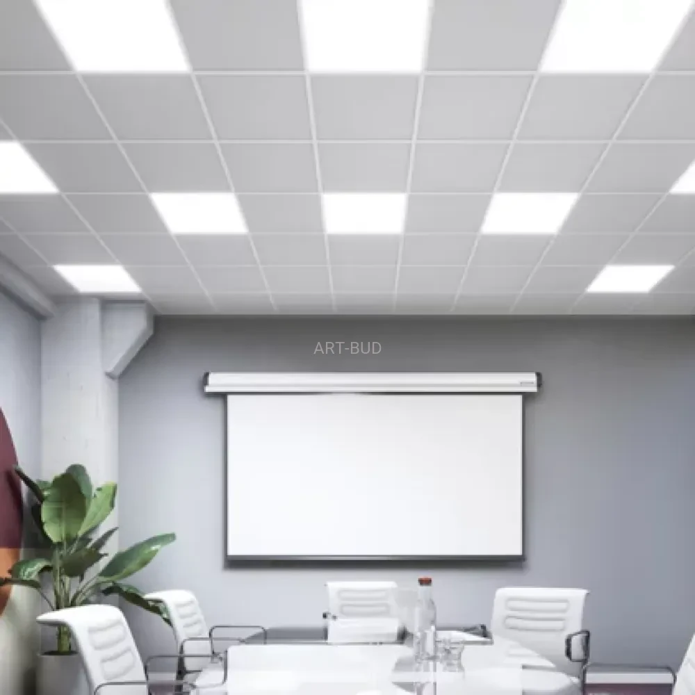 Montaż w standardowych systemach sufitowych – płyty 600 × 600 mm bez konieczności specjalnych cięć czy przeróbek.
