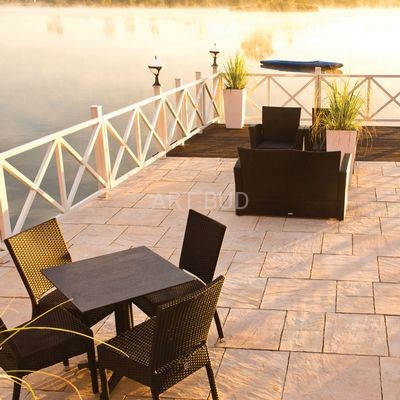 Płyta tarasowa inspirowana naturalnym wyrobem z piaskowca, odwzorowująca tradycyjną ręczną metodę obróbki naturalnego kamienia oraz utrwalony tradycją, klimat takiego wykończenia powierzchni utwardzanych. Kamień Ciosany to wspaniałe, widoczne na pierwszy rzut oka rekonstrukcje płyt piaskowca