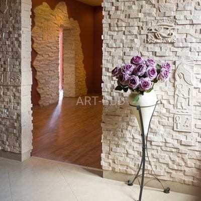 Kamień dekoracyjny Efta Walmar to idealna propozycja dla osób szukających inspiracji w starożytnej architekturze. Nieregularne kształty płytek, tworzące efekt światłocienia, w pełni zachowują charakter egipskich piramid.