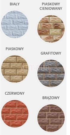 Płytki dekoracyjne dostępne kolory: DIJO piaskowe, białe, czerwone, brązowe, grafitowe oraz cieniowane piaskowe