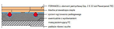 Przykład FERMACELL element jastrychowy 2 E 22 lub Powerpanel TE na wodnym ogrzewaniu podłogowym