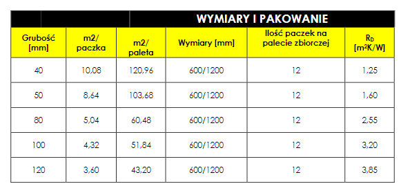 Płyty dostępne są w grubościach 50, 80, 100, 120 mm