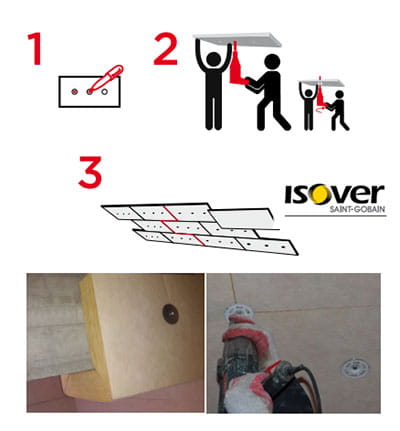 ISOVER Stropmax 31 poddaje się nierównościom betonu a równą powierzchnię uzyskuje się za pomocą odpowiedniego dokręcania wkrętów.